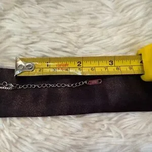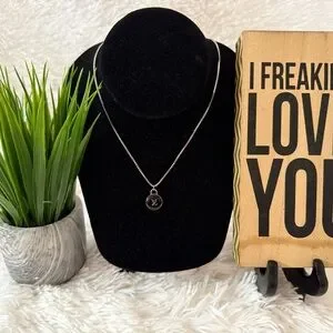 She has an unbranded 18 inch silver-plated chain that has a 2inch extender with a lobster clasp closure, which can be replaced, if desired.