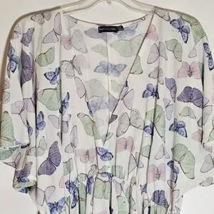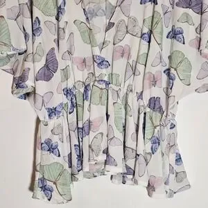 PrettyLittleThing Blouse Womens 2XL White Pastel Butterfly Kimono Top