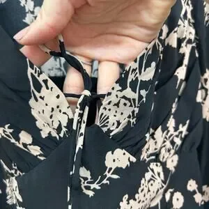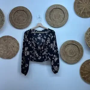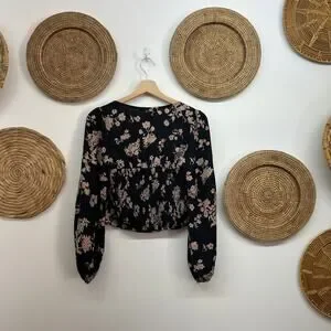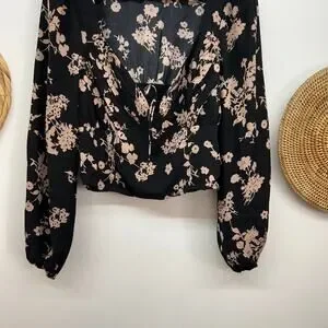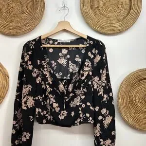 Abercrombie Black Tan Long Sleeve Tie Seamed Crop Long Sleeve Top Small Floral
