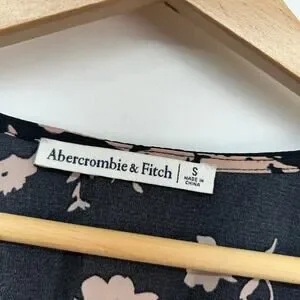 This feminine Abercrombie long sleeve crop top features a beautiful floral design on a black and tan backdrop. The seamed bodice adds a touch of sophistication, making it a versatile piece for your wardrobe. Perfect for adding a stylish flair to any outfit.