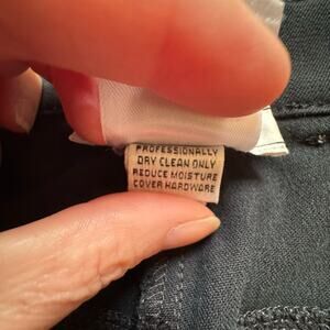 Good preowned condition. Previously dry cleaned. Some discoloration to gold toned hardware on belt loops. See photos.