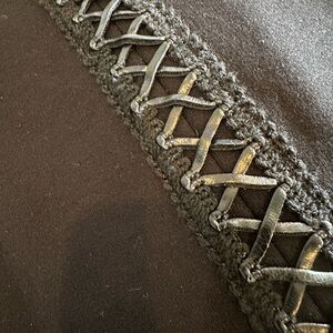 Catherine Malandrino Black Stetchy Dress with Faux Leather Design Detail Size 4-rear exposed silver zipper-excellent condition no flaws!