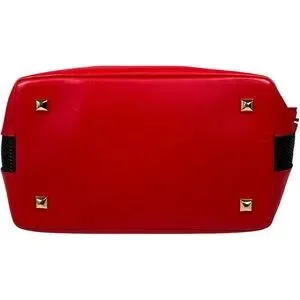 Elegant red leather shoulder bag with tassels & black side accents. Perfect for adding a pop of color to any outfit. Features a stylish design and practical interior.