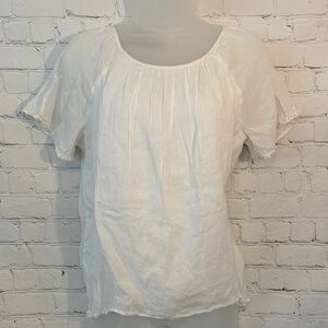 Elegant white blouse perfect for any occasion. Soft fabric and stylish design make it a wardrobe essential. Front is lined so it is not see through! Back and sleeves not lined! Size M. Pit to pit is approx 19 inches.