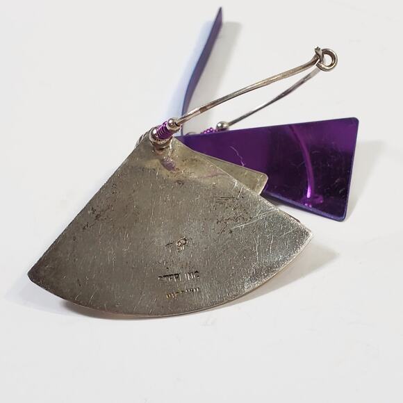 Vintage Sterling Silver Niobium Triangle Fan Hoop Earrings Signed PTP