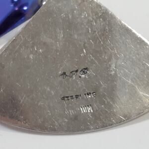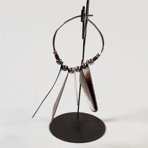 One of the hoops is bent as seen in picture. There is some tarnish on the silver pieces and some wear/fingerprint on the backs of the niobium pieces.