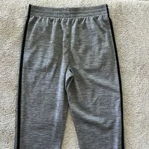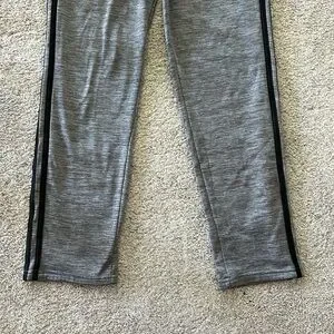 Adidas Boys Heather Gray Workout Pants with Black Accents. Stylish heather gray joggers with sleek black accents. Ideal for everyday comfort.pockets. Elastic drawstring waistband. Size XL (18-20). Excellent condition.