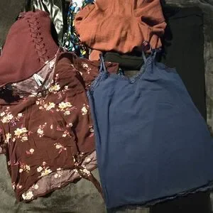 These pictures were taken on a camera phone. I am by no means, a professional photographer. Colors may vary by shades. I try to get them as close as I can, to the right color. Items are in pre-owned condition, which means they may show signs of wear. Such as faint stains, frayed hems, pinning etc.These items come as a lot/bundle, no separating individual pieces. Comes from a smoke free pet free home. Thank you for looking! :)
