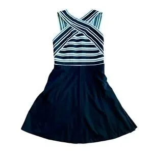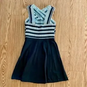 Anthropologie Maeve Black White Crosswise Stripe Fit & Flare Mini Dress Womens 6