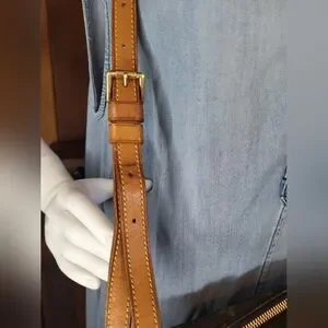 There is some rubbing and wear on the strap patina leather (look at pictures). Patina leather overall on bag is in great condition. Otherwise, the bag is in great condition.