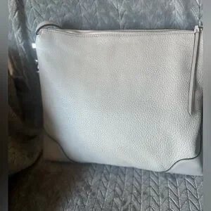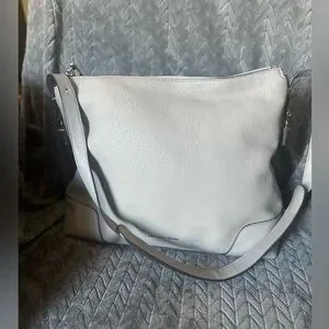 Large Michael Kors Crosby hobo/shoulder bag in soft pearl grey leather with silver-tone hardware. Slouchy yet structured silhouette with a spacious interior and comfortable shoulder strap.