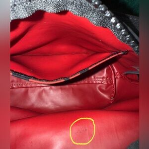 Eye-catching Longchamp shoulder bag with bold red and black graphic design. Ideal for everyday style.