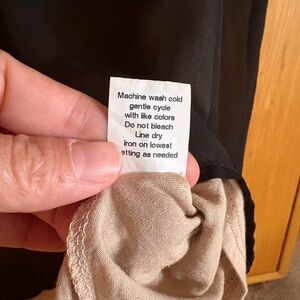 This top is fun! The chic black sheer layer covers a nude lining so it’s sexy without being see-through. Front left pocket. Generous fit is flattering but not clingy. 100% poly sheer and rayon lining. Machine wash and line dry. From smoke- and pet-free home.