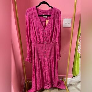 Anthropologie Fuchsia Dress with Gold Accents