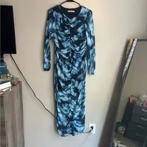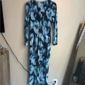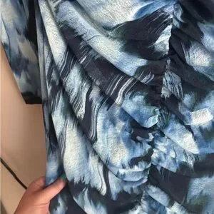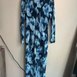 Bold and stylish dress with a striking blue and black pattern. Perfect for making a statement. See pictures! Size Large Petite