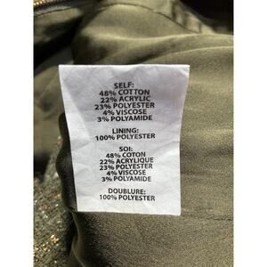 Ramy Brook 'Shane' Green Cotton Metallic Tweed Mini Dress Size 6: scoop neck at front and back, sleeveless, zipper at center back, pleated hemline flounce, lined.