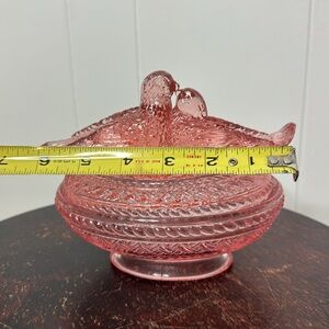 Vintage pink glass nesting bowl love bird doves