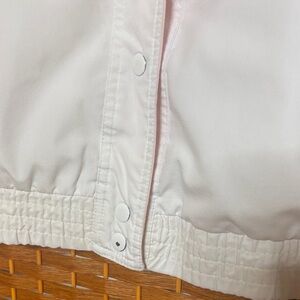 Adorable bomber jacket with white body with pink trim. Cute pleated front, excellent condition. Size M.