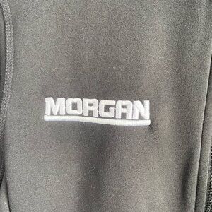 Embroidered with Morgan on the right side, see pictures. Could be covered with a patch or unstitched.