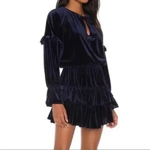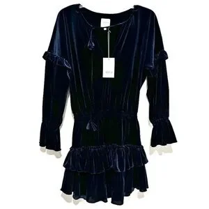 MISA Los Angeles | Lorena Blue Velvet Long Sleeve Ruffle Mini Dress Size XS NWT
