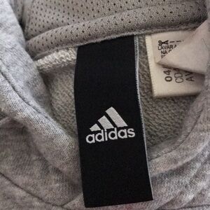 Adidas sleeveless hoodie in gray. Features a bold logo on the front.