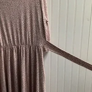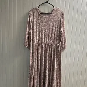 Chic long sleeve dress with subtle pink pattern. Comfortable and stylish for any event.