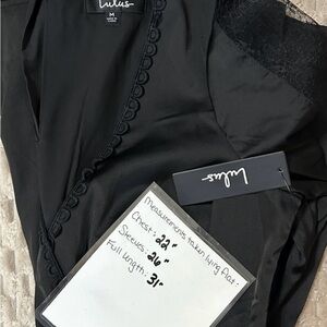 Stylish black satin romper with intricate lace trim. Ideal for elegant occasions.