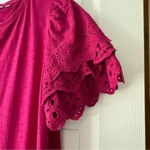 Fuchsia dress with eyelet lace flutter sleeves. Great dress for all occasions. Great condition.