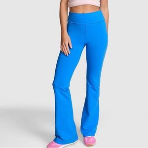 PINK Victoria’s Secret 💖PINK FRIDAY💖 limited edition and completely 🔥SOLD OUT🔥 online All Day Cotton Foldover Flare Leggings flares yoga pants ~ color blue charge with cute Y2K retro vintage pink Pink logo on back of waistband 😍✨