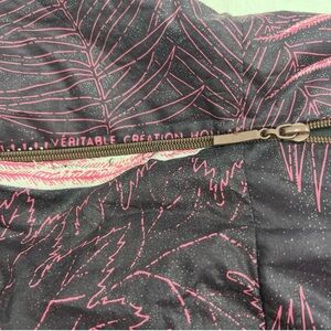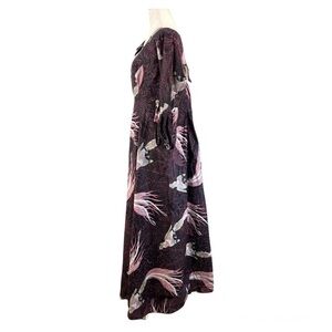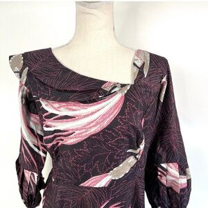 Vintage handmade pink and plum gown with an asymmetrical neckline - no tag, size or material but it feels like a satiny cotton. Super unique. The bodice is lined with a zipper in the back. Would fit a L but better for an XL in my opinion but check the measurements below (all taken flat):