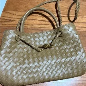 Discover the perfect blend of style and functionality with this elegant tan woven handbag. Ideal for any occasion, this bag adds a touch of sophistication to your ensemble. Includes an inside zipper pouch, crossbody, or shoulder, or hand carry. In excellent condition. Measurements are 14 x 8.5 x 5.25