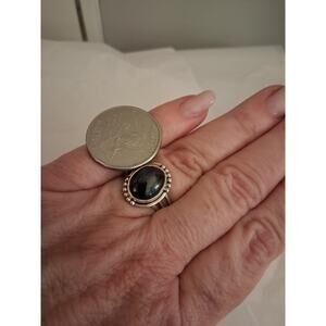 Black Onyx Size 9, Triple Band, 925 Sterling Silver, Vintage Style