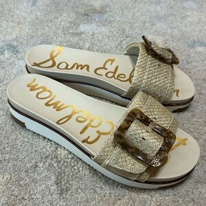 Buckle up for fun. With a lifted sole and an exaggerated buckle, our Ariane slides are ready for a walk on the beach or an afternoon out.