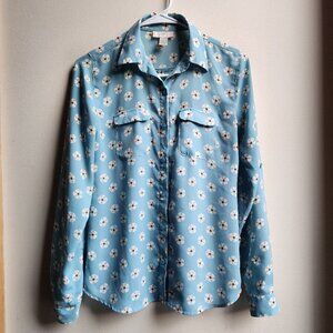 LOFT Blue Floral Button Down Shirt Size XS