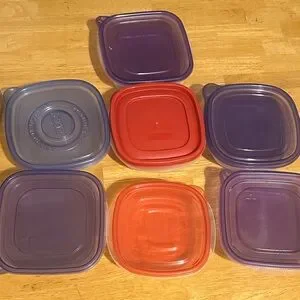 7 square containers. 2 have been thoroughly used but all clean and in good shape