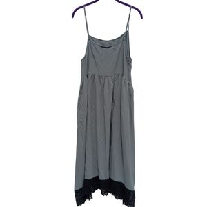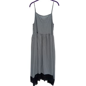 Free People Intimately Gray Black Crochet Trim Spaghetti Strap Slip Dress Sz M