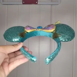 Disney Parks Aladdin Magic Carpet Themed Sequin Teal Minnie Mouse Ears Headband