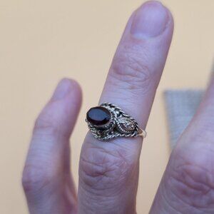 Size 5.25 Sterling Silver Dainty Red Garnet Rope Style Ring A5334