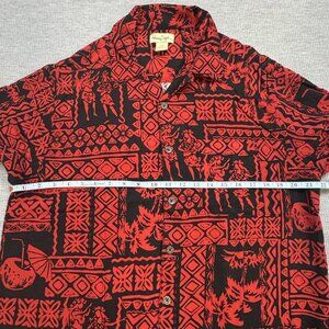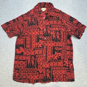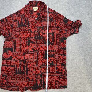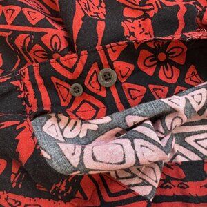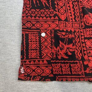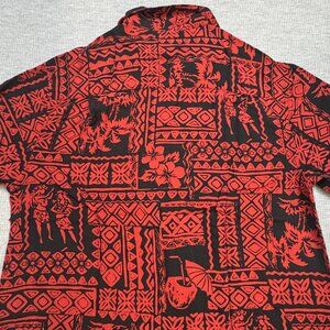 Panama Jack Mens Sz L Red Geometric Hawaiian Shirt Short Sleeve Hula Girl Rayon