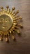 Elegant gold sun face brooch with sparkling accents. Perfect for adding a touch of glamour.