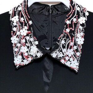 NWT rickie freeman Teri Jon Peplum Hem Embellished Collar Black Shift Dress Sz 6