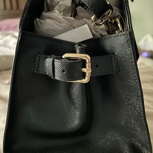 Brand new with tags! Elegant 100% genuine Italian leather with a chic pebble-grain finish, gold-tone hardware, and stylish side buckle detail. Spacious and structured—perfect for work or everyday use.