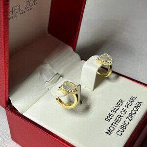 New Rachel Zoe Mini Gold Heart Hoop Earrings 925 silver Mother of Pearl