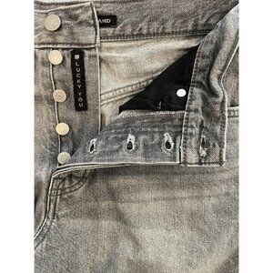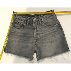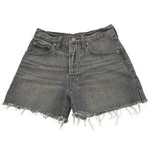 Lucky Brand Jean Shorts Size 0/25 - Gray/faded black washed denim with a high rise, button fly closure, and raw frayed hem for a relaxed, casual look.