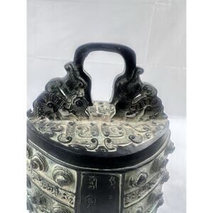 This Antique Chinese Dynasty Bronze Ware Xizhou 2 Dragon Ear Clock Bell Zhong statue is a beautifully handcarved piece originating from China. Crafted from bronze, this unique figurine depicts a dragon theme, with intricate details and a historical significance that adds to its charm. As an antique original piece, it showcases the craftsmanship and artistry of ancient China, making it a valuable and collectible item for those interested in Asian antiques.