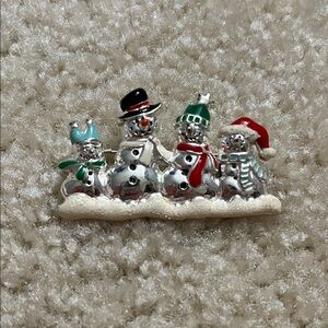 Celebrate the season with this charming snowman family pin. Featuring vibrant red, green, and silver colors, it's a perfect addition to your holiday wardrobe. In great condition. Please let me know if you have any questions. Offers welcomed :)