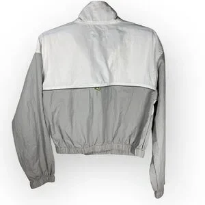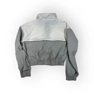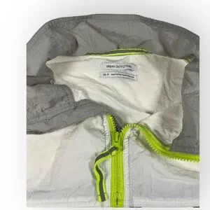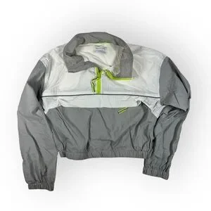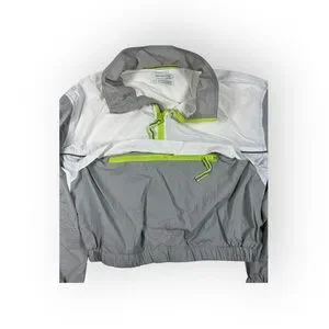 Gray, white and neon yellow/green colorblock windbreaker pullover track jacket