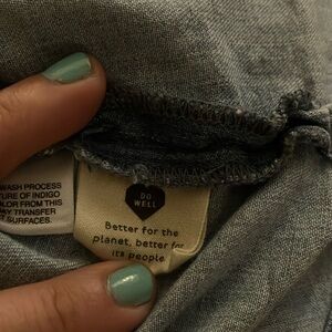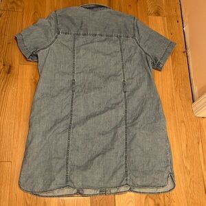 Madewell button-down light denim dress with short sleeves and pockets! Pockets on chest and at hips! Belt loops on back at seams. Great for layering!