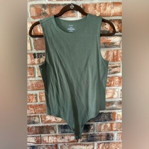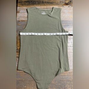 Chic olive green bodysuit. Sleeveless design. Versatile and stylish. Size large. Smoke free home. Never worn.