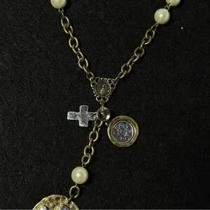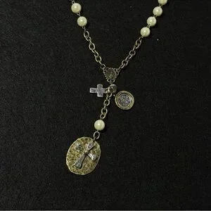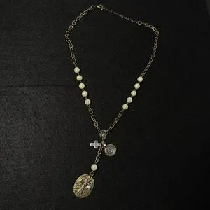 This elegant necklace features a stunning gold chain adorned with cream accents. Perfect for adding a touch of sophistication to any outfit.